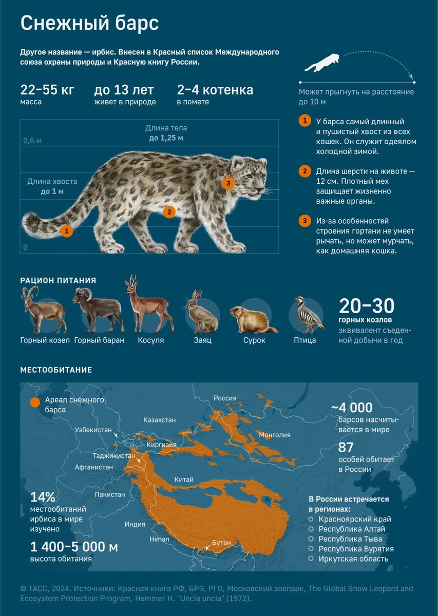 Браконьерство, особенно из-за ловушек для кабарги, является главной угрозой для популяции снежного барса на Алтае. Снежные барсы, внесённые в Красную книгу, гибнут в петлях, предназначенных для других животных. Незаконная добыча редких кошек фиксируется, что ставит под угрозу численность этого вида. 🔍 Источник: stanural.ru 🌄 Фото: tass.ru 📣 Присоединяйтесь к нам: stanural