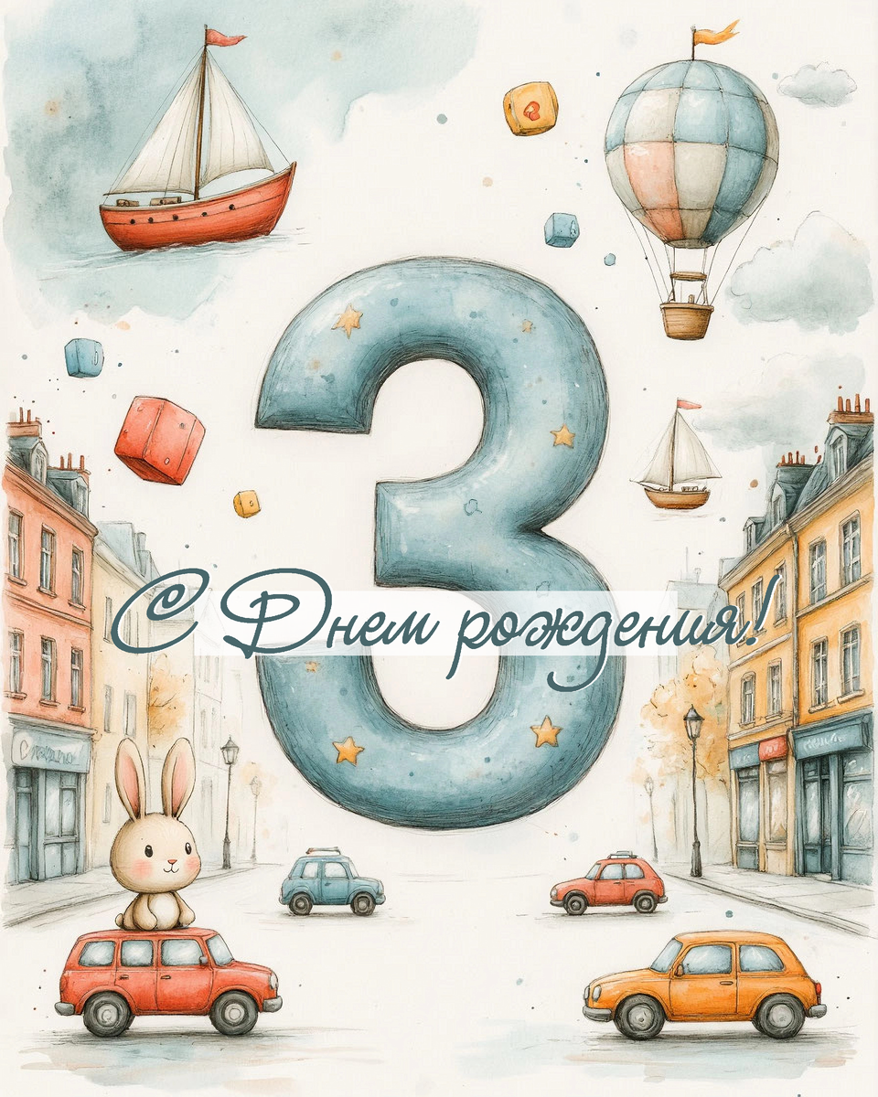Минималистичные открытки и поздравления с днем рождения мальчика или девочки на 3 и 4 года