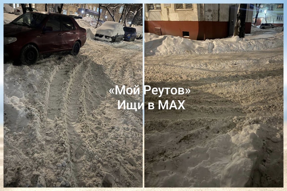 Калинина 24, и так ездим впритирку к припаркованным авто, так еще и это месиво дворники игнорируют, машины вечно уходят в занос и буксуют. Надеемся что через ваш канал добьемся, чтобы расчистили. #отподписчиков 📲 «Мой Реутов» в MAX