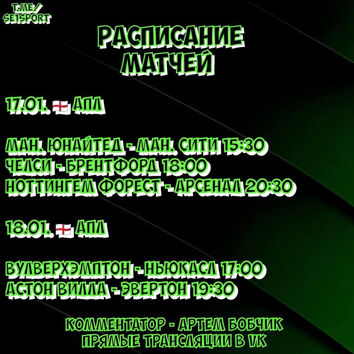 📒 Расписание матчей на выходные дни