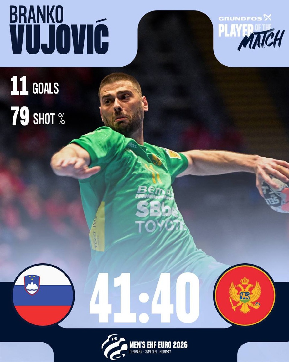 ‼️ Сборная Словении одержала победу над командой Черногории в самом результативном матче в истории чемпионатов Европы по гандболу