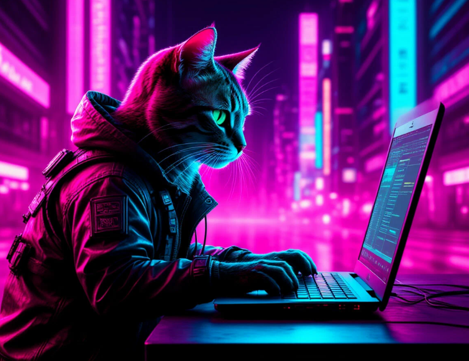 Однако, некоторые работы получаются очень даже интересные или милые. Хочу познакомить вас с моими такими работами. Вот котик - хакер, как я его назвала ) Ну чем не милый? Представитель цивилизованный расы котов! Вот эти две картинки были сгенерированы по одному заданию. Это мне как то в ночи захотелось, чтобы колючая проволока постепенно превращалась в роскошные цветы. Прям превращения я не дождалась, но вот эти два мне понравились (было попыток 10) А вот так ИИ поняла задание: Дорога в цифровом лесу из светящихся данных внезапно упирается в мощную стену с гигантской неоновой надписью "5000 ₽". Главный герой останавливается перед ней, но вместо того чтобы лоббировать, начинает подниматься по верёвочной лестнице на обходной путь. Наверху виден свет и силуэт логотипа Wildberries. Стиль киберпанк, атмосфера принятия сложного решения. На мой взгляд на цифровой лес не оч