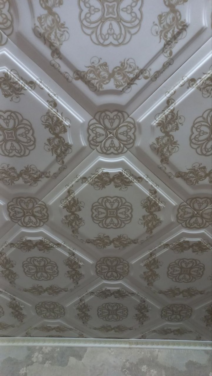 - потолок — плитка с золотистым узором (куплена давно, ждала своего часа, как сокровище в сундуке);