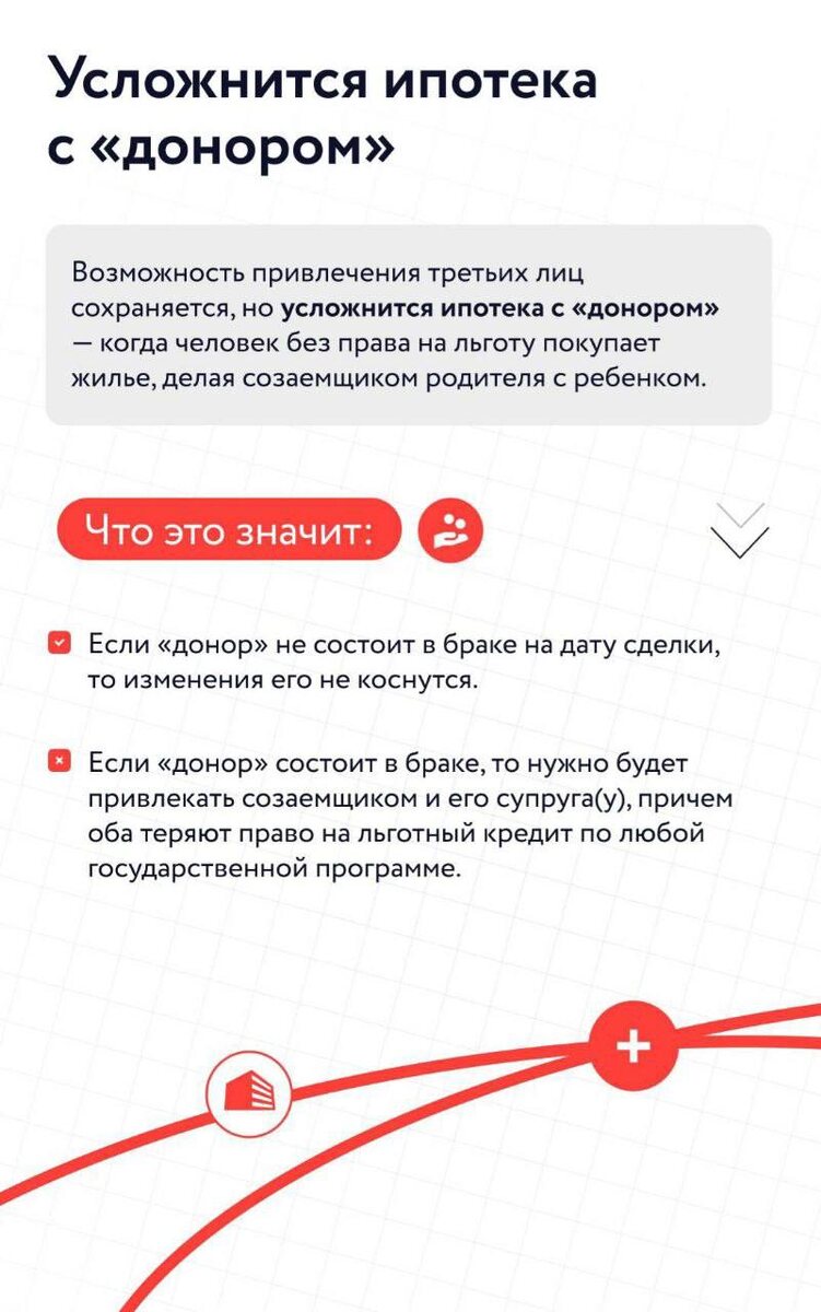 Отдельная проблема — семейная ипотека. Банки массово отказывают в её выдаче из-за новых правил.