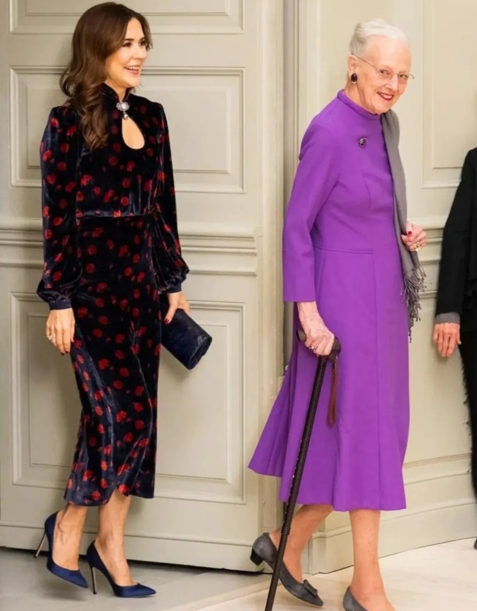 Королева Дании Маргрете || и её невестка королева-консорт Мария посетили вместе придворный театр во Дворце Кристиансборг в Копенгагене.