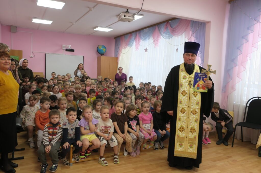 14 января 2026 года, в праздник Обрезания Господня, в мкрн. Пироговский в Мытищах состоялись рождественские встречи в двух корпусах дошкольного отделения «Берёзка» школы № 19. Настоятель Преображенского храма д. Пирогово протоиерей Сергий Белокрылов встретился со всеми воспитанниками и коллективом детского дошкольного учреждения. Встреча была наполнена повествованием о светлом празднике Рождества Христова и взаимными поздравлениями с детьми и педагогами. Святочное действо, подготовленное воспитателями, стихотворения и дружные детские песнопения наполнили праздничное мероприятие. В завершение рождественской встречи все сотрудники и воспитанники дошкольного учреждения получили от прихода Преображенского храма п. Пирогово маленький подарок и красочную книжку «Рождество Христово».