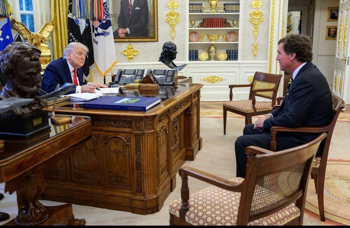 Tucker Carlson seen talking to both Trump and Marco Rubio at the White House