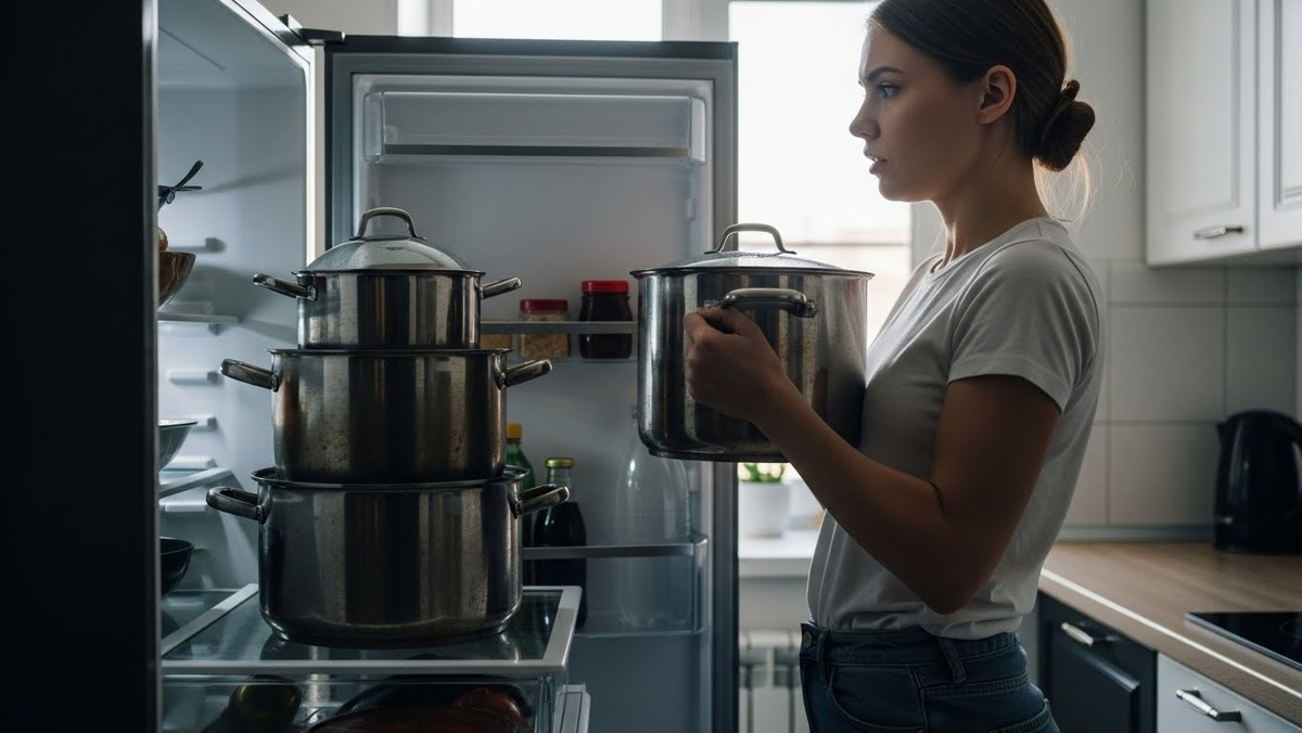 Три кастрюли стояли в холодильнике — одна на другой, как башня. Борщ. Во всех трёх. Красный, густой, с жирной плёнкой сверху. Я открыла холодильник утром, чтобы достать молоко для кофе, и обнаружила, что половина полок занята этими кастрюлями. Моё молоко, мой йогурт, контейнеры с едой — всё сдвинуто, втиснуто по углам.