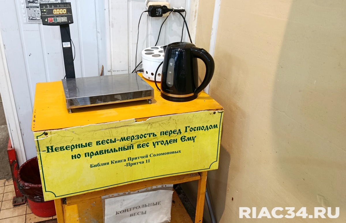 В Волгограде случилось невероятное. Сотрудники торговли вдруг массово осознали, что обманывать покупателя есть смертный грех. И данное осознание приняло даже религиозный характер. Тому есть документальные свидетельства. На Ворошиловском рынке контрольные весы обзавелись цитатой из Библии. Конкретно — из Книги Притчей Соломоновых: «Неверные весы — мерзость перед Господом, но правильный вес угоден Ему». Представляется картина, как перед началом трудового дня продавцы по очереди прикладываются к цитате, истово шепчут клятвы пребывать в честности и проходят на свои рабочие места, утирая повлажневшие глаза. Однако проведённый опрос показал, что ничего подобного не происходит. Никаких таких утренних церемоний не производится, поскольку честность — вообще в характере наших продавцов. А торговля исключительно на правильных весах является непреложной истиной, всосанной торговыми работниками с молоком матери. И им почему-то веришь. Владимир АПАЛИКОВ