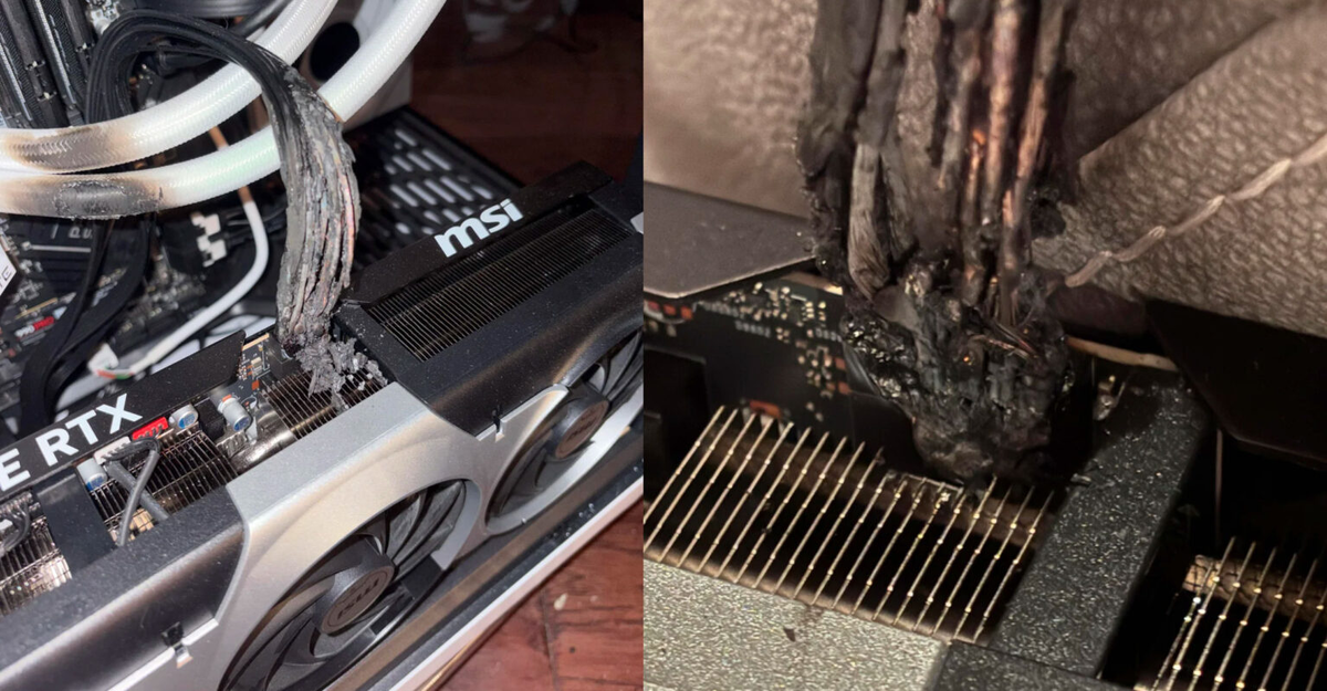 Участник форума Reddit описал инцидент с видеокартой GeForce RTX 5090, при использовании которой произошло возгорание 16-контактного кабеля питания. По словам пострадавшего, сначала появился необычный запах, а затем в области разъёма возникло открытое пламя. Графический адаптер эксплуатировался приблизительно девять месяцев. Известно, что подобные кабели неоднократно становились причиной сложностей с подключением и перегревом у владельцев последних поколений видеокарт. Описанный случай примечателен именно фактом активного горения, а не распространёнными симптомами вроде потемнения пластика или внезапного отключения дисплея. «Моя RTX 5090 работала девять месяцев, но решила устроить рождественское шоу с настоящим пламенем! Это не просто плавление контактов: сначала запах, а через секунду — пожар. NVIDIA моментально удалила мой пост, но раз вас интересуют детали — блок питания ATX 3.1 PowerSpec PS 1050 GFM с родным кабелем 12 В-2×6. Использовался только с этой видеокартой. Не знаю о надёж