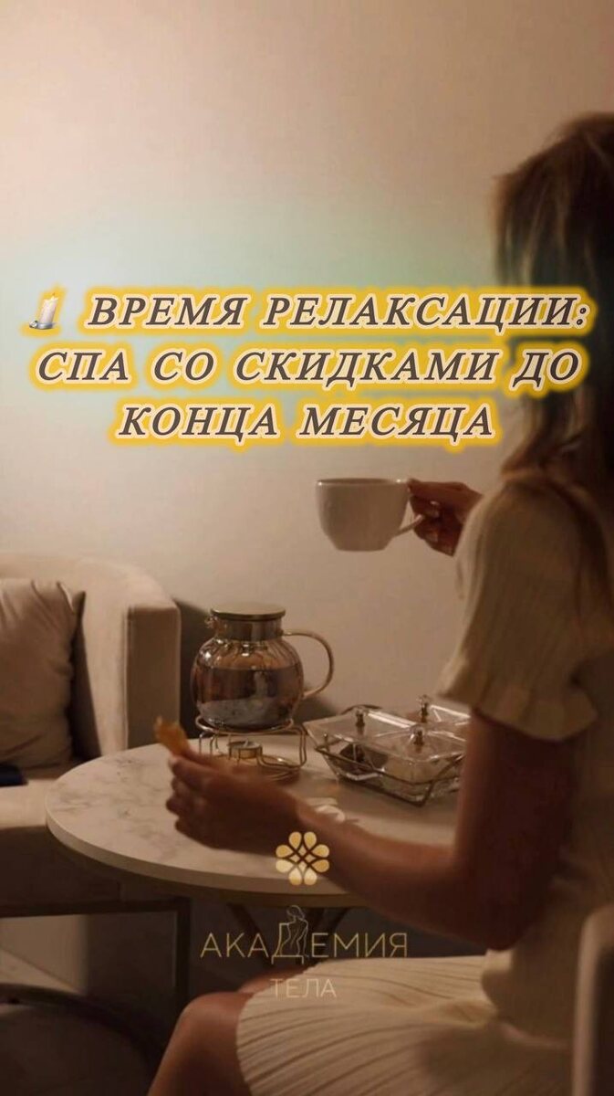 » Самое время замедлиться, выдохнуть и подарить телу заботу 💆♀️ ✨ ВСЕ АКЦИИ ДЕЙСТВУЮТ ДО КОНЦА МЕСЯЦА ✨ 🔸 СКИДКА 10% НА КОМПЛЕКСНЫЕ SPA-ПРОГРАММЫ 🌿 «Детокс» | 80 минут • водорослевое обёртывание — 60 мин • скрабирование Эффект: уменьшение отёков, лёгкость 4550 ₽ 4095 ₽ 💧 «Увлажнение» | 60 минут • медовый массаж — 60 мин • скрабирование Эффект: питание и мягкость кожи 2400 ₽ 2160 ₽ 🍫 «Атласная кожа» | 90 минут • шоколадное обёртывание — 60 мин • скрабирование Эффект: гладкая и увлажнённая кожа 4550 ₽ 4095 ₽ ✨ «Абсолютное блаженство» | 90 минут • термо-одеяло — 60 мин • массаж лица, шеи и зоны декольте — 30 мин Эффект: глубокое расслабление 3700 ₽ 3330 ₽ 🌿 СКИДКА 15% НА SPA-ПРОГРАММЫ СО СКРАБАМИ ОТ «АКАДЕМИИ ТЕЛА» 🌿 «Освежающий шалфей» | 90 минут Лёгкость, снятие отёков, тонус сосудов 5650 ₽ → 4802 ₽ 🍈 «Инжир и специи» | 120 минут Лимфодренаж, уменьшение объёмов 7300 ₽ → 6205 ₽ 🔥 «Красное дерево» | 120 минут Антицеллюлит, лифтинг, упругая кожа 7300 ₽ → 6205 ₽ ✨ В