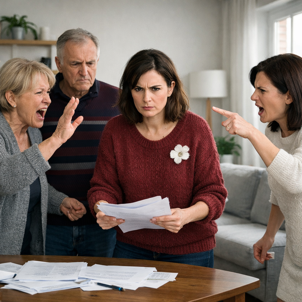 За столом сидели они все. Свёкор, свекровь, золовка Оксана со своим мужем. Перед ними — документы, ноутбук, какие-то бумаги.