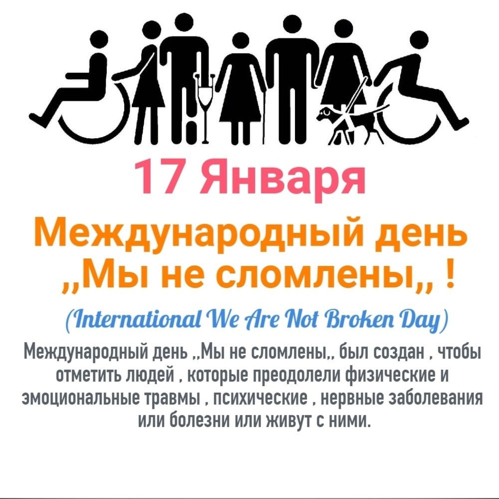 ! 💪 17 января — Международный день «Мы не сломлены» Этот день посвящён поддержке людей, которые пережили тяжёлые физические или эмоциональные травмы, живут с хроническими заболеваниями или психическими трудностями — и продолжают идти вперёд, несмотря ни на что. 🩺 Что такое травма? Травмы бывают разными — не только видимыми. 🔹 Физические травмы: — падения и ДТП — производственные и бытовые несчастные случаи — ножевые и огнестрельные ранения 🔹 Психологические травмы: — насилие и изнасилование — утрата близких — террористические атаки — тяжёлые стрессовые события Травмы могут оставлять след на всю жизнь — как внешний, так и внутренний. Шрамы нередко становятся символом выживания, но при этом люди сталкиваются со стигматизацией и непониманием. 🧠 Почему важен этот день? Людей, переживших травму, часто ошибочно называют «сломленными». Но травма — это не ярлык и не характеристика личности. Международный день «Мы не сломлены» был учреждён организацией We Are Not Broken, основанной