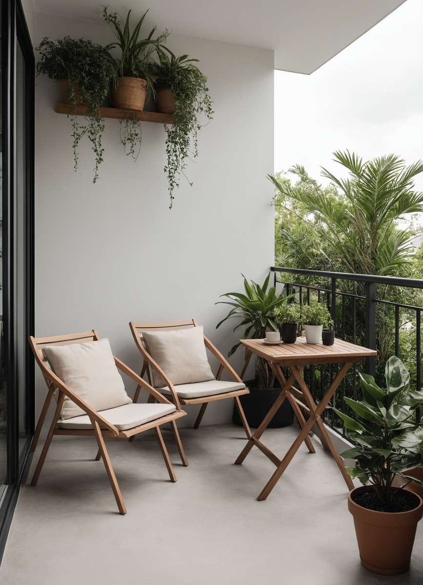Минимализм подразумевает чистые линии, нейтральные цвета и функциональные предметы. Такой подход делает балкон визуально просторным и легким, позволяя сосредоточиться на природном окружении. Простые стулья, минималистичный стол и несколько растений создают гармоничную атмосферу, где каждая деталь имеет значение. Чистота и порядок - ключ к успеху в этом стиле.