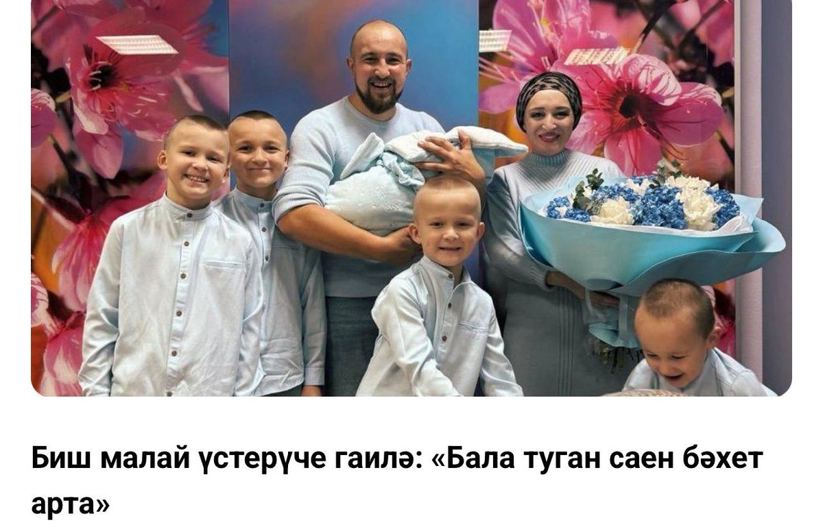 Гөлфинә белән Искәндәр биш балага гомер биреп, авылны яратып, әби-бабай васыятен үтәп гомер итәләр. Өйләре тулы егетләр аларның. Күпләр шәһәрне сайлаганда, алар авыл дип җан атып яши. Үзләре дә эшли, балаларын да хезмәт белән үстерәләр. «ВТ» журналисты Хуҗиәхмәтовлар гаиләсенең бәхет серен белеште 👇🏻 https://vatantat.ru/news/bis-malai-usteruce-gaila-bala-tugan-saen-baxet-arta-111340