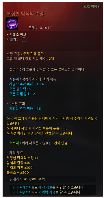 Статы нового Улучшенного кристалла порчи: Доп урон крит удара +10%, вся атака +5, снижение всего урона -2.