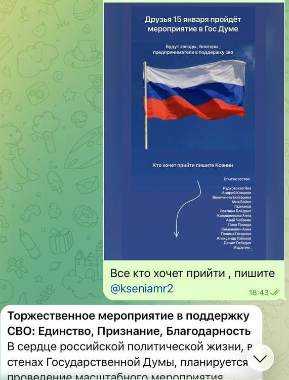 Волонтерам предлагают поучаствовать в торжественном мероприятии в Госдуме/Минобороны/Звезде Смерти/Офисе "Людей в Черном" в связи с их награждением медалями и грамотами за помощь СВО. Но есть нюанс: за возможность "посмотреть" необходимо заплатить 4500, за участие в награждении - от 40 до 50 тысяч рублей. После перевода средств аккаунт мошенники вяло отвечают и в итоге пропадают. Мероприятие 15 января не произошло и для новых "хомяков" было перенесено на 24 января. В махинациях замешан телеграм-аккаунт с ID 8282914891. Тогда это была Ксения, сейчас может быть совершенно другой ник. Будьте аккуратны, дорогие коллеги, глупо надеяться на то, что вас внезапно, через Телеграм, неизвестные люди со связями в Госдуме позовут за что-то наградить 😜
