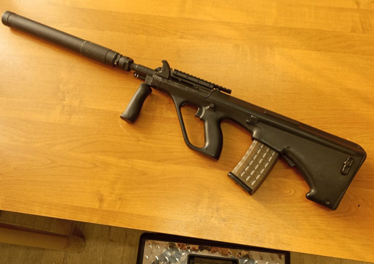 Steyr AUG (Armee Universal Gewehr — довольно интересное оружие, точнее даже скорее комплекс. Рассказывать о нем смысла нет, общая информация находится в свободном доступе, но вот некоторые интересные факты. Это оружие в зависимости от задачи может быть и автоматом, пулемётом и даже винтовкой марксмана. Имеет возможность быстрой смены стволов, перевода выбрасывания гильзы на левую или правую сторону, выбор режима ведения огня степенью нажатия спуска (в боевом варианте), а также возможностью установки любого допоборудования и ещё много чего. Плюс компоновка буллпап позволяет превратить его в довольно компактное оружие с учётом сохранения достаточной длины ствола. Есть и ряд минусов, но об этом позже. Разборка довольно проста, за исключением некоторых моментов. При обслуживании использовали стандартную схему обслуживания с последовательным очищением. На первом этапе при использовании универсального средства для чистки и смазки после обработки были удалены основные отложения продуктов сгор