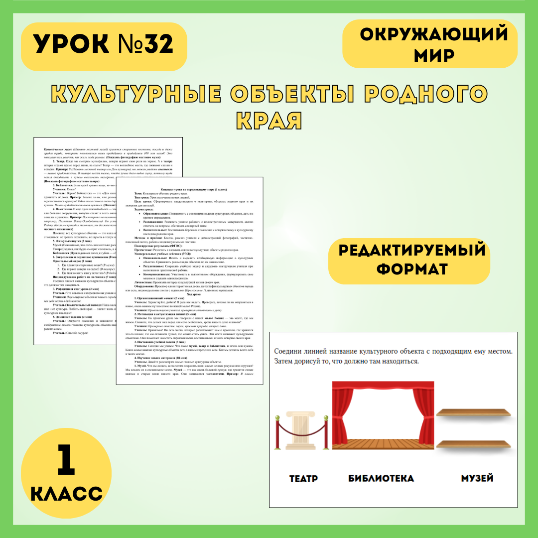 Конспект урока №32 "Культурные объекты родного края" (окружающий мир, 1 класс)