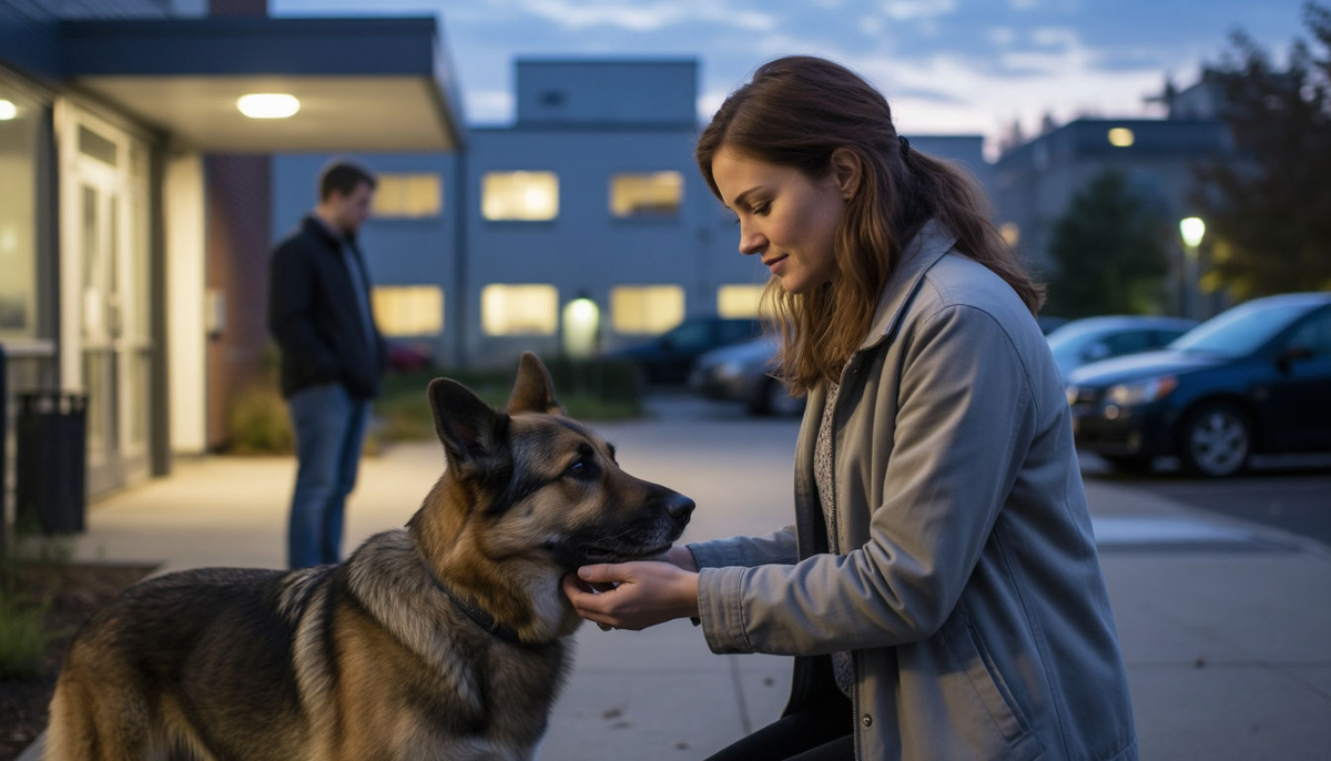 Рекс среагировал мгновенно — схватил коробочку в зубы и ткнулся носом в ногу Марины.
