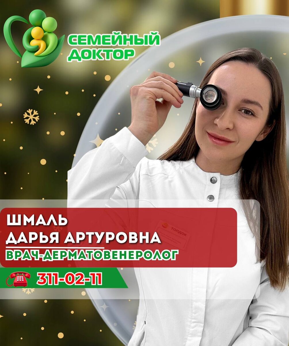 Знакомимся со специалистами нашей сети. 👩⚕️ Шмаль Дарья Артуровна Дарья Артуровна — квалифицированный дерматолог, окончивший Новосибирский государственный медицинский университет в 2019 году по специальности «лечебное дело», и завершивший ординатуру по дерматовенерологии в 2021 году. Она постоянно повышает свои знания в области трихологии и косметологии, что позволяет ей предоставлять актуальные и эффективные решения для своих пациентов. Специализация и подход В своей практике Дарья Артуровна сталкивается с различными хроническими заболеваниями, такими как: · Псориаз · Экзема · Акне · Себорейный и атопический дерматиты Она уверена, что важнее не только вылечить обострение, но и поддерживать ремиссию как можно дольше. Работает с пациентами всех возрастов, включая детей 👧, что делает её подход особенно чутким и заботливым. Профессиональные качества Маленькие пациенты и их родители отмечают её умение быстро и практически безболезненно проводить удаление новообразований. Дарья А