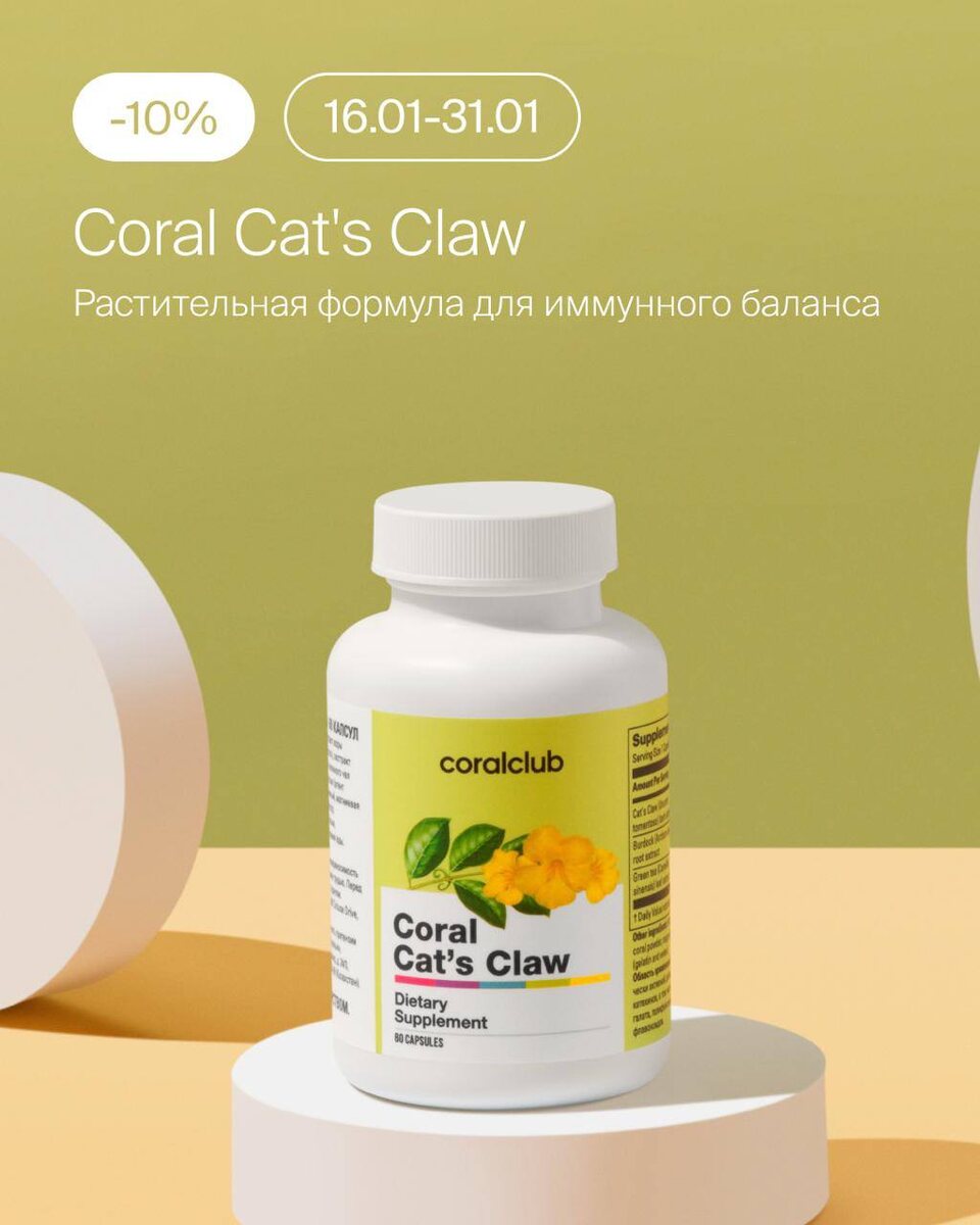 🎆 С 16 по 31 января — новые предложения на продукты, которые поддерживают тело, баланс и энергию: ▪︎ Promarine Collagen Peptides: –10% ▪︎ Coral Taurine: –10% ▪︎ Coral Cat’s Claw: –10% Начало года — лучшее время, чтобы заложить фундамент для хорошего самочувствия. Акции действуют ограниченное время. #коллаген #акция #скидки