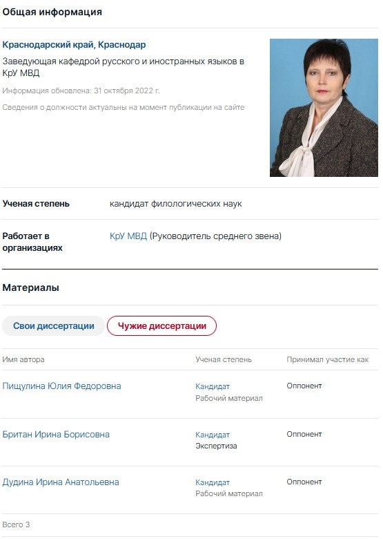Заведующая кафедрой русского и иностранных языков в КрУ МВД