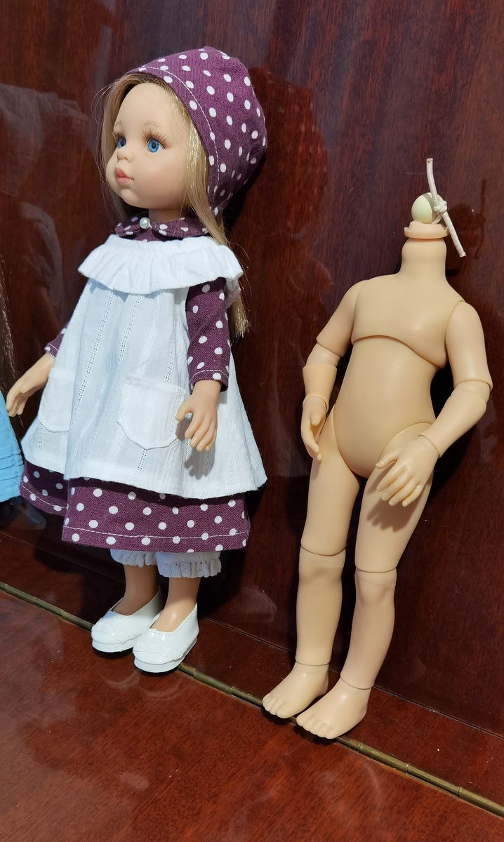 Стала думать, кого из кукол осчастливить. Хотела-было предложить его Зефирке, но скинтон у нее светлый, с розовым подтоном - не подошло. Отобрала трех кукол с похожим оттенком: Кэрол, Карла (на фото) и Клава. После проведенного конкурса победителем стала Кэрол - моя самая первая кукла-паолка.