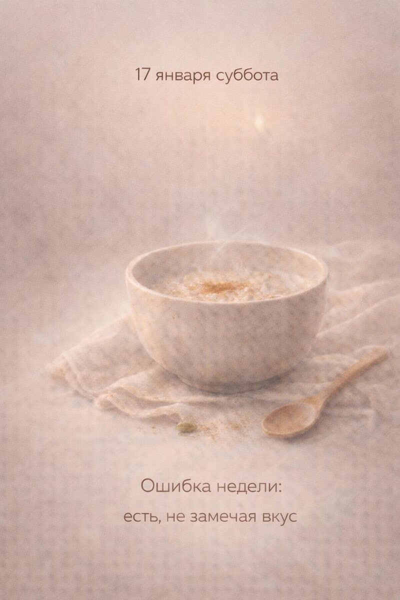Но вечером — пустота. И кажется, что ты просто устала. На самом деле — ты не поела. Даже если был завтрак, обед и ужин. ❗Ошибка недели: Есть, не замечая, что ты ешь. Проглатывать вместо того, чтобы прожить вкус. Тело остаётся голодным, даже когда желудок полон. ⚠Почему это мешает: – Пищеварение начинается с запаха, взгляда, предвкушения. – Если этого нет — агни слабнет, ама накапливается, и появляется вялость. – Плюс тревожность: ты не успела быть в моменте еды. А значит — не насытилась. 🌿Как по-другому: – Хотя бы 1 приём пищи в день — в тишине, без экрана. – Перед первой ложкой — вдох и выдох. Тело включается. – Положи приборы после каждого 3-го укуса. Спроси себя: я чувствую вкус? ⛔Кому осторожно: Если ты склонна «заедать» эмоции — это особенно важно. Не запрещай себе еду, но замедлись. Дай телу сказать: хватит. 💫Образ: тёплая каша, в которой слышна корица. Ты держишь ложку — и чувствуешь аромат. Ты есть здесь. Сохрани, если за неделю ты хоть раз подумала: «Я поела — а сил вс