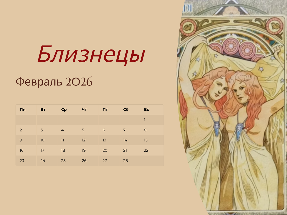 Каким будет февраль для Близнецов узнаем у Таро. Мы посмотрим возможности и опасности месяца, события по основным сферам жизни и получим совет для Близнецов на февраль месяц. Приветствую всех! Меня зовут Марина. Буду благодарна вашим лайкам и комментариям. Подписывайтесь, чтобы не пропустить новые прогнозы. Итак, давайте начинать! Возможности и опасности. Карта возможностей Кольцо говорит о заключении какого-то договора, соглашения между людьми, как в любовных, так и в деловых отношениях. Это могут быть помолвки, свадьбы или контракты, например. Карта опасностей предупреждает о каких-то мелких пакостях. Обратите внимание на свое окружение. Могут быть недружелюбные люди. Финансы. Противоречивый месяц по финансам. Денег будет то густо, то пусто. Возможно вы потеряете какой-то источник дохода. Но эти перемены будут к лучшему. Вы сможете решить проблемы. Отношения. У вас месяц будет полон страстей. От ревности, обид и подозрений, до бурных примирений. Возможна беременность. Вобщем, ску