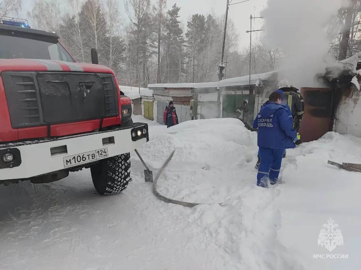 На Бочкина загорелся гараж. По версии МЧС, огонь вспыхнул из-за неосторожного обращения. Во время тушения спасатели зашли внутрь и обнаружили погибшего мужчину. Пожар удалось остановить на площади 18 квадратных метров. На месте работали 7 человек и 2 единицы техники. 📸 https://t.me/krasnoyarsk_smi #ОгниЕнисея #Дивногорск