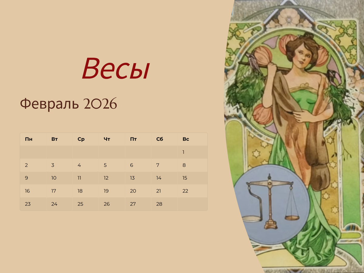Каким будет февраль для Весов узнаем у Таро. Мы посмотрим возможности и опасности месяца, события по основным сферам жизни и получим совет для Весов на февраль 2026 года. Приветствую всех! Меня зовут Марина. Буду благодарна вашим лайкам и комментариям. Подписывайтесь, чтобы не пропустить новые прогнозы. Итак, давайте начинать! Возможности и опасности. Карта возможностей Клевер- это символ нежданной удачи, счастливого события. Даже при не самом лучшем стечении обстоятельств эта карта подарит вам радость и утешение. А карта опасностей предупреждает о том, что в этом месяце может понадобиться ваша помощь, уход или забота какому-то близкому человеку. Финансы. По финансам вам стоит остерегаться, чтобы не стать жертвой обмана. Вы можете купиться на какое-то выгодное на первый взгляд предложение. Обязательно проверяйте всю поступающую информацию. Будьте бдительны. Отношения. В отношениях вы можете переживать по поводу какого-то события в вашей жизни. Это событие очень важно для вас. Оно д
