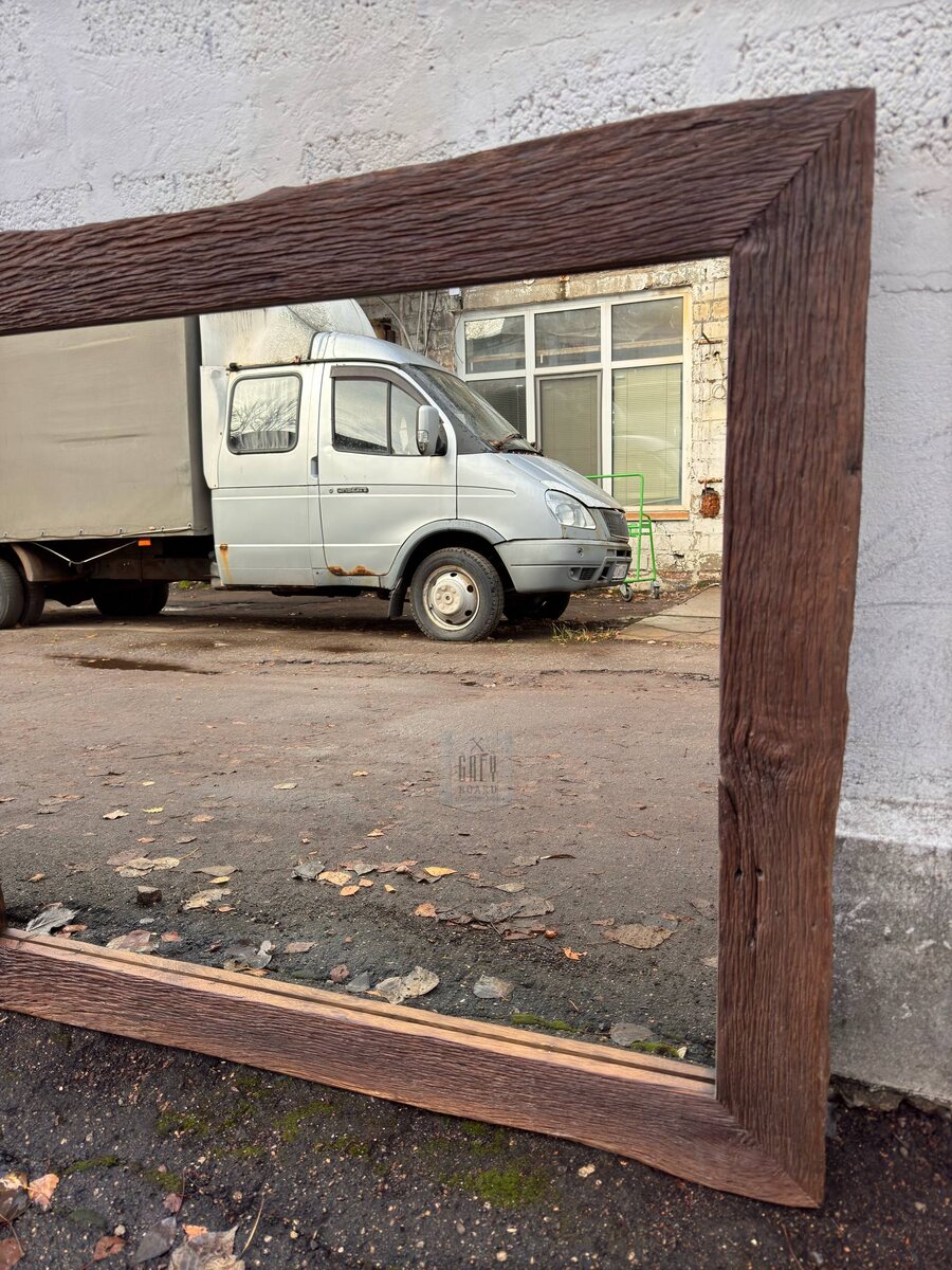 Рама выполнена из старого дуба — с живой фактурой, глубоким рельефом и временем, запечатлённым в каждой трещинке. Мы не стремились скрыть возраст древесины, наоборот — подчеркнули его. Такое зеркало становится не просто предметом интерьера, а настоящим акцентом — тёплым, самобытным, вечным. #стараядоска #зеркало #магазинстарыхдосок #greyboard #зеркаловраме