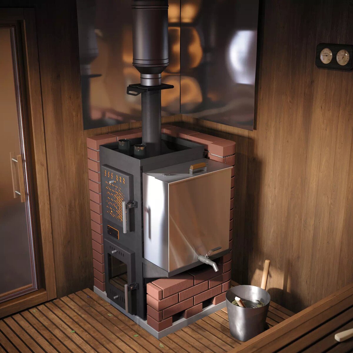 - Закрытая каменка: камни находятся внутри металлического кожуха, который нагревается отходящими газами. Такая конструкция позволяет накопить огромное количество тепла (камни могут раскаляться до 500-700°C) и получать при поливе тот самый легкий, необжигающий пар, ценимый в русской бане. Прогрев парной при этом происходит преимущественно за счет конвекции и излучения от корпуса печи, что занимает немного больше времени.