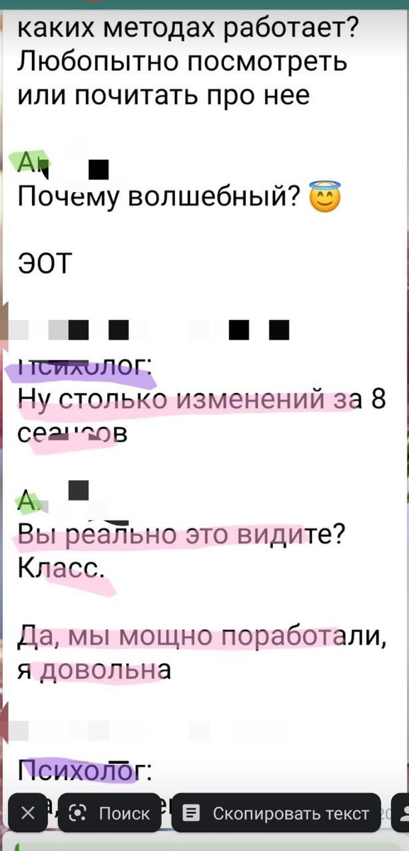 ". Вот такой очень приятный и неожиданный комплимент прилетел от коллеги, которого я, если честно не знаю... Но он, видимо, знал мою клиентку и наблюдал за ее изменениями, которые происходили. Видимо интересно было наблюдать эффект от терапии.👀 Кстати, надо отметить, что фактически было всего 6 встреч, 6 консультации на момент этой переписки. Но, тем не менее изменения чувствуются не только самим человеком, но видны со стороны.✨ ✅ Вернулась энергия и силы, появилась мотивация. ✅Обрела финансовую стабильность, устроилась на работу. ✅ Появилась внутренняя опора, внутренняя стабильность. Есть смелость двигаться и изменять свою жизнь и жить. ✅ Появилось понимание, чего она действительно хочет и что ей действительно нужно. Что очень радует меня, как специалиста. И я очень рада за свою клиентку, что все так классно и мощно у нее проходит🔥