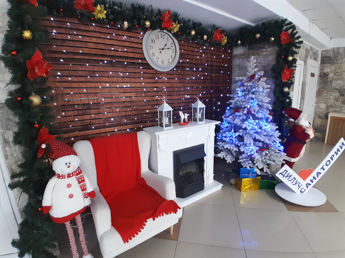 Зимой мы здесь, в санатории, в первый раз, застали ещё убранство к НГ, уже снимают и разбирают инсталляции.
