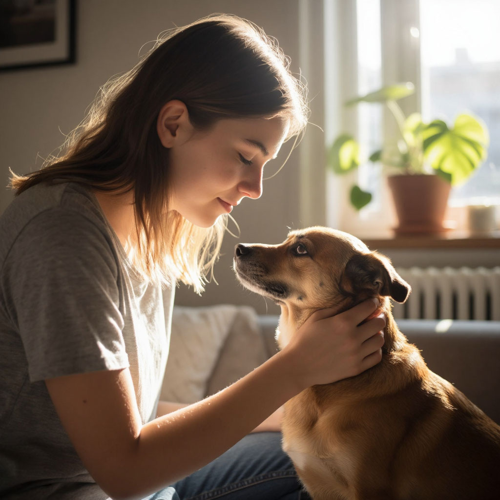 Собака сидела перед девушкой и , как будто, пыталась понять.