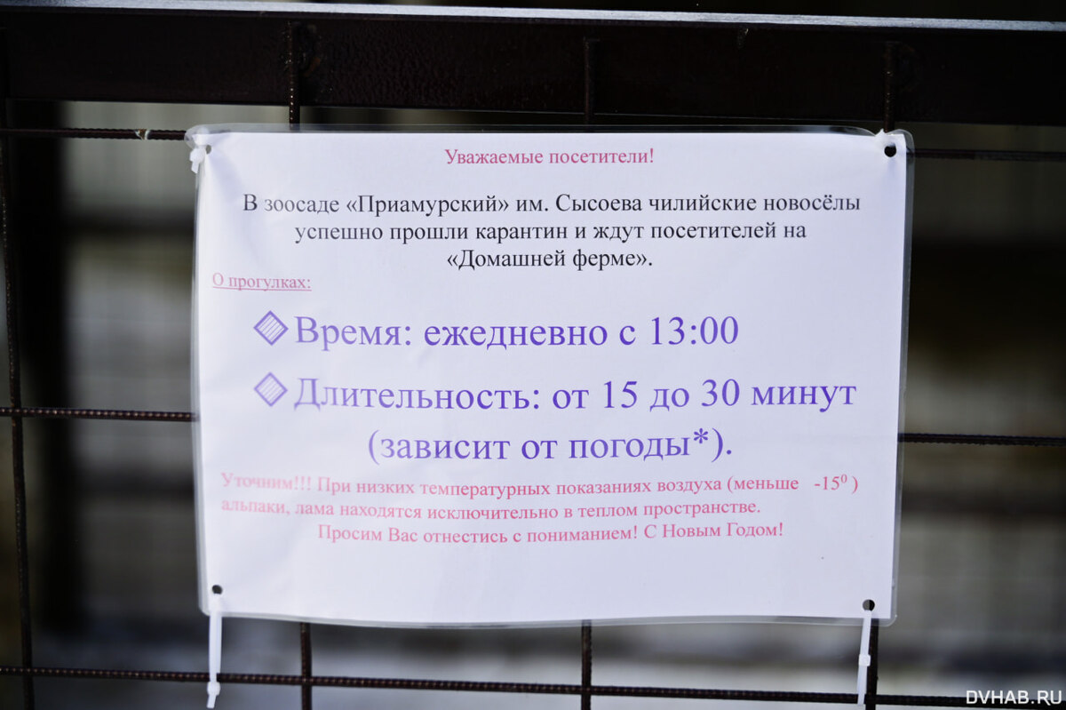 В конце прошлого года в зоосаде «Приамурский» появились новые жильцы: чилийские альпаки и одна лама. Все они уже прошли карантин, но пока их выпускают на обозрение хабаровчан лишь на ограниченный срок. Троица альпак прибыла в Хабаровск в конце ноября, а уже в декабре они прошли карантин. Ранее пушистые парнокопытные проживали в центре «Mellian Alpakas». Животные молодые – каждому порядка двух лет. О ламе же стало известно в конце прошлого года, она тоже уже прошла карантин. Ей, кстати, совсем недавно выбрали имя. Волею хабаровчан, ее теперь зовут Ляля. Новых , а также старых, обитателей зоосада вы можете посмотреть в нашем фоторепортаже. Напомним, что ранее медведь Буржуй в хабаровском зоосаде отметил День рождения. В этом году Буржую исполнилось три года. Однако свой праздник он встретил уже в спячке. Фото Данила Бирюкова