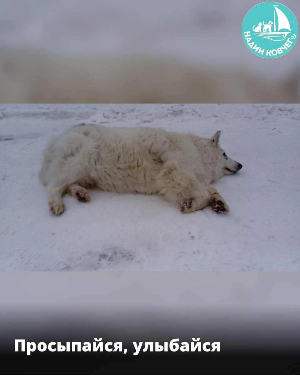 Это не медвежонок Умка на льдине, это наш Бим на снегу.😉