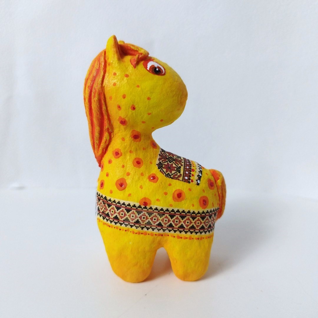 Желтая лошадка, сделанная под керамику и покрыта двойным слоем глянцевого лака