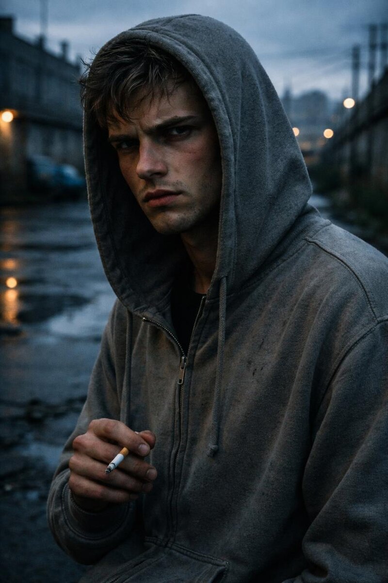 Он — обычный парень, загнанный в угол. У него больная мать, долги брата-наркомана и «волчий билет» в жизнь. Он пахнет потом, дешевым табаком и безысходностью. Он груб. Он опасен. Но у него есть свой кодекс чести,