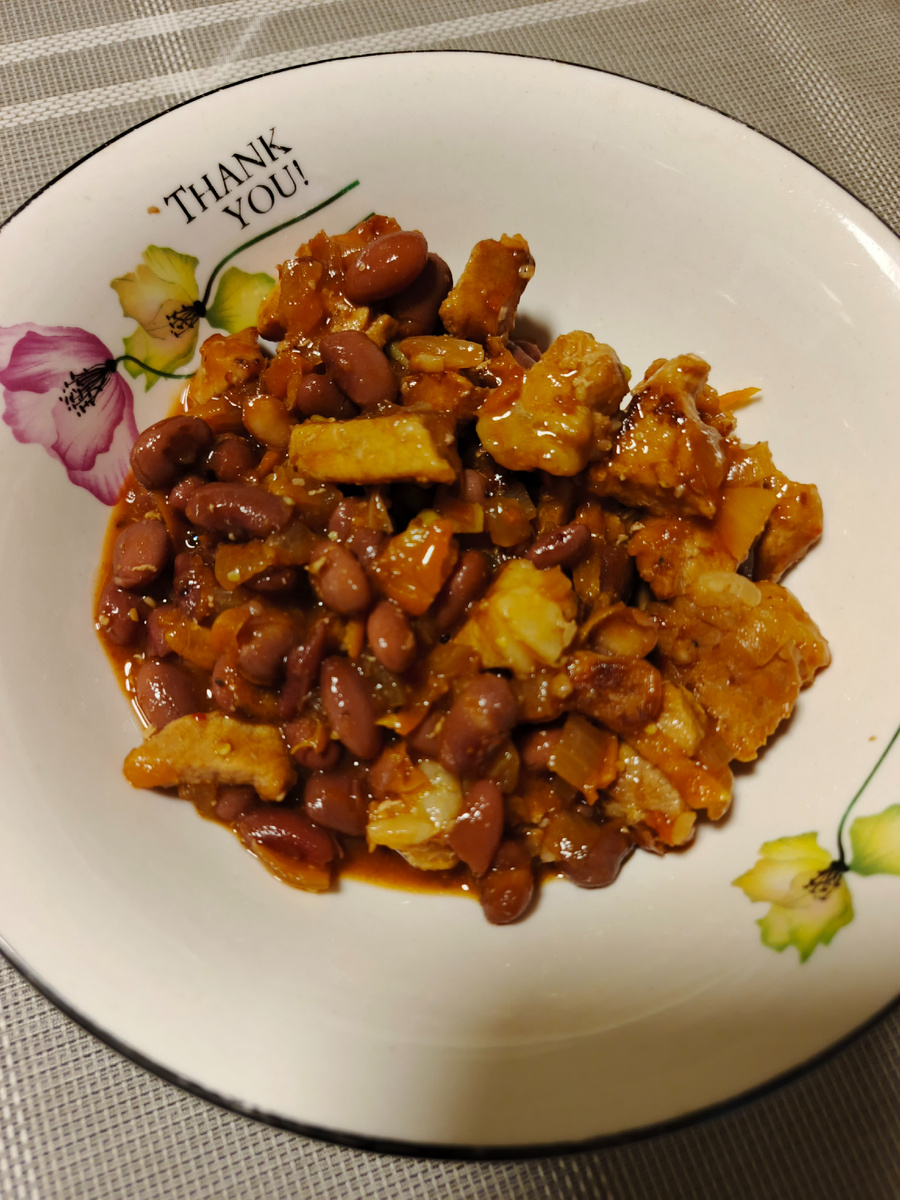Здравствуйте! Наконец-то, наконец-то эта первая неделя в этом году подошла к концу. Мы просто тюленим сегодня весь день. Уборка была вчера, но от нее мало толку, кошки вносят свои коррективы) Вливаться, конечно, тяжеловато. Но все же радостно. Каждый раз, когда новогодний утренник позади, как и все эти празднования, испытываю чувство облегчения. Возвращаемся к регулярной работе и регулярным публикациям. Сегодня показываю, что готовила всю неделю. У меня какой-то перекос в сторону мяса. Еще хочется чего-то свежего и зеленого, но ассортимент у нас какой-то максимально слабый. Проросшей пекинки и вяленых огурцов я не хочу. Помидоры деревянные. Закрываю свои потребности капустой. Подсела на ким-чи. Но от нее я частенько по утрам не нахожу на лице глаз. Но, обо всем по порядку. Экспресс-ужин. Приготовила свинину кусочками, с луком и морковью, потом добавила банку консервированной фасоли в томате и еще немного протушила. Получилось вкусно, но мало) Поняла, что я очень давно не покупала фасол