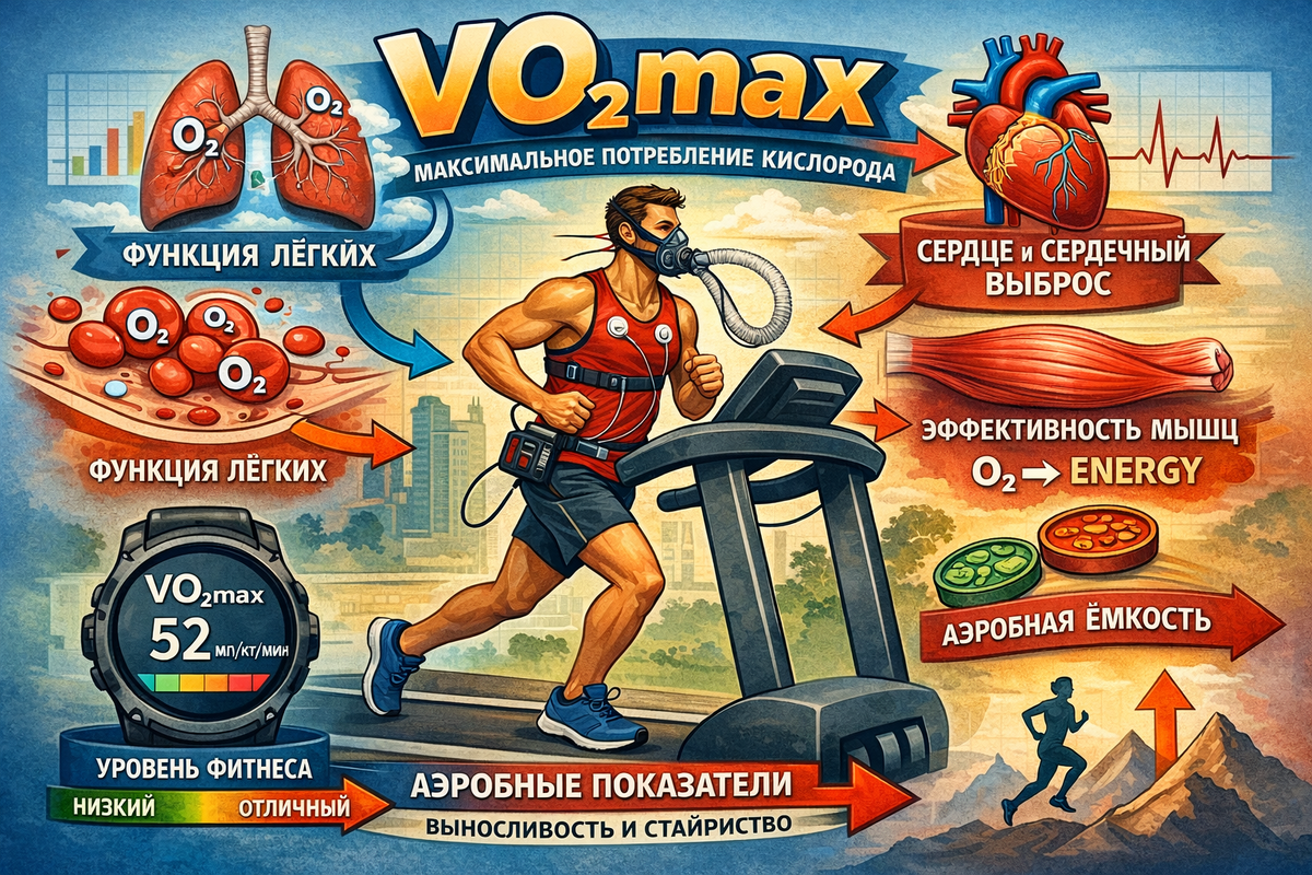 VO2max (максимальное потребление кислорода) — ключевой биомаркер кардиореспираторной функции, измеряемый в миллилитрах кислорода на килограмм массы тела в минуту (мл/кг/мин). Вопреки распространённому убеждению, что аэробная функция неизбежно снижается с возрастом, научные доказательства демонстрируют, что 50–70% снижения VO2max у пожилых людей обусловлено поведенческими факторами, а не только биологическим старением. Это означает, что люди способны значительно улучшить свою кардиореспираторную функцию при помощи правильно структурированных тренировочных программ.