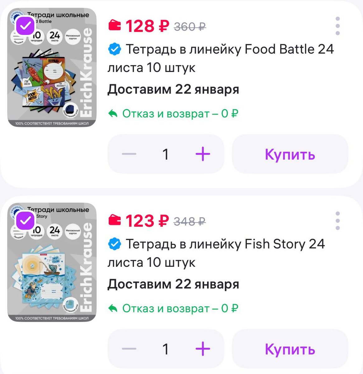 😃😄😔ErichKrause Тетрадь в линейку Fish Story 24 листа 10 штук