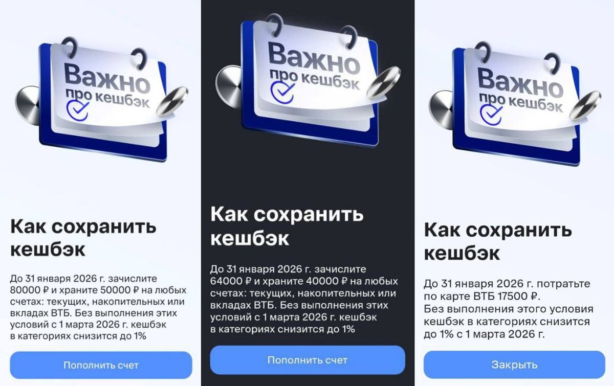!? Увидел, что кому-то в приложении ВТБ начали приходить такие письма счастья. Причем разным людям приходят разные требования по суммам. Я бы пока ничего не делал. Думаю, что ВТБ может очень много клиентов потерять, если введут подобные условия. Поэтому ждем дальнейших новостей. А вы часто пользуетесь картой ВТБ? ❤️ - Да, нравятся там кэшбэки 🗿 - Нет, есть карты поинтереснее