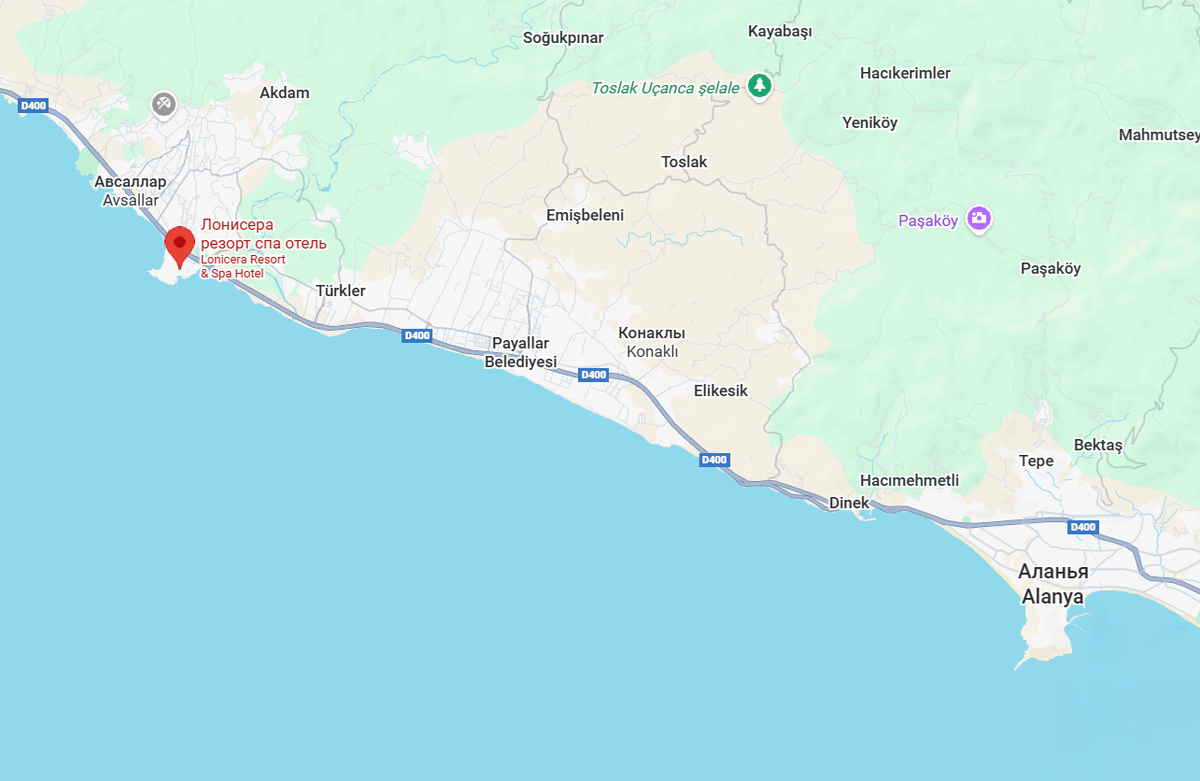 Отель Lonicera Resort & Spa 5* расположен в курортном поселке Тюрклер (Аланья) – в 100 км от аэропорта Анталии. Он открылся в 2017 году и работает по концепции Ultra All Inclusive. Отель находится на первой береговой линии песчаного пляжа. Эту бухту (Тюрклер/Авсаллар) часто называют лучшим пляжем в Аланье.