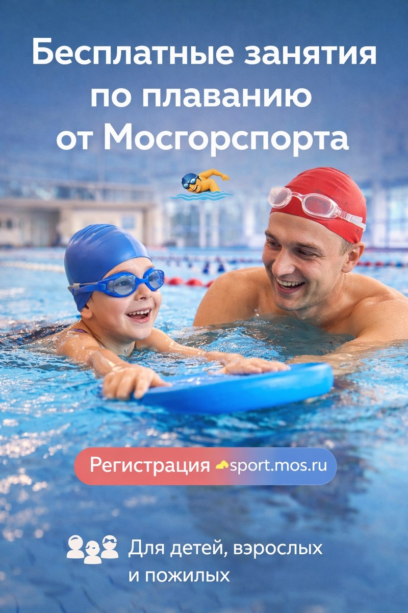 Открыта запись на бесплатные тренировки по плаванию — для детей, взрослых и пожилых. Есть группы для начинающих и продолжающих в разных районах Москвы. 🎟 Регистрация 🔎 В фильтрах выбирайте: вид спорта — плавание, льгота — бесплатно, возраст и удобный район . Отличный шанс начать или вернуться к тренировкам 💦 • WHEREYOUGO Москва | Куда пойти • #сдетьми • Мы в MAX