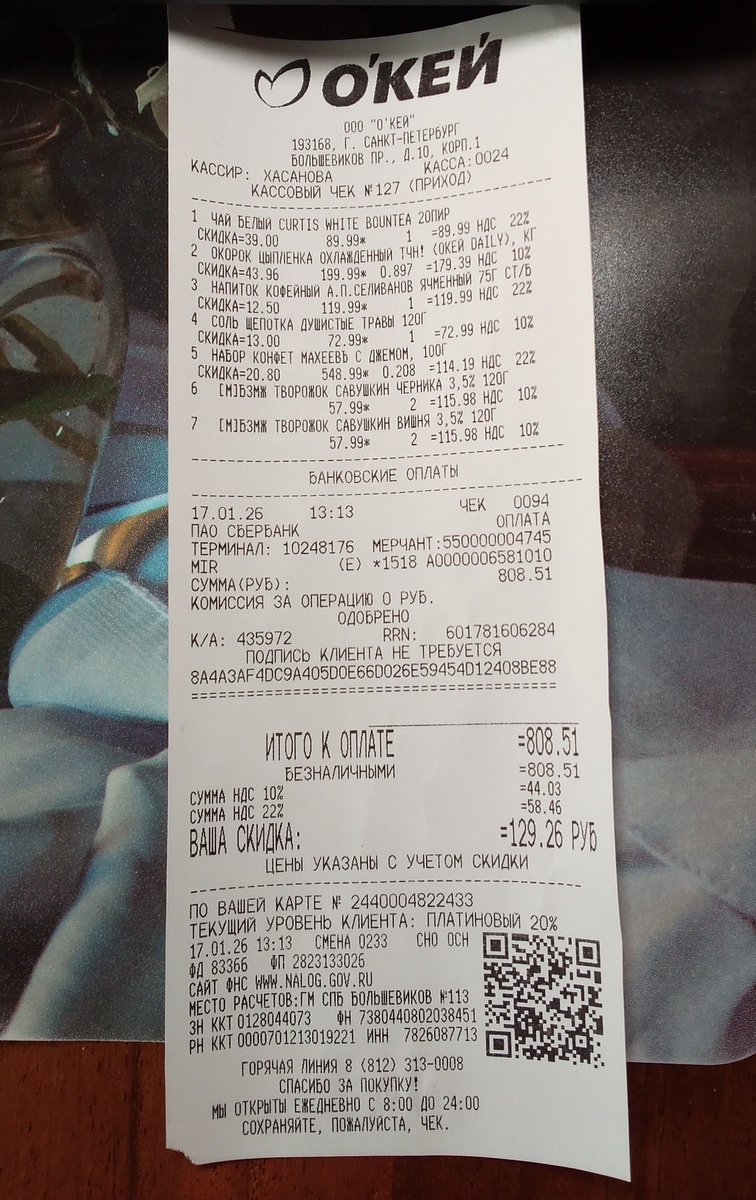 В «Окее» купила куриных бедер, а остальное по мелочи.