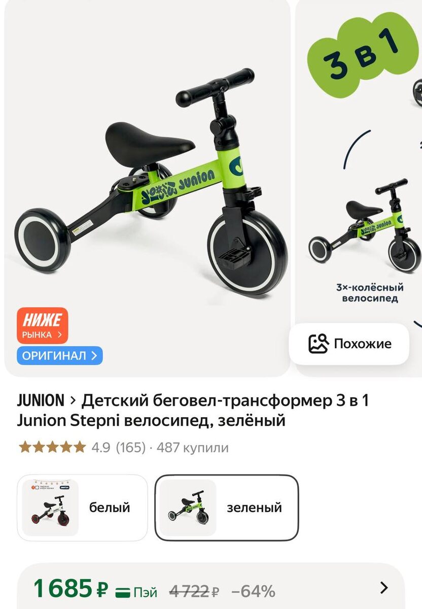 😃😪😴😲Детский беговел-трансформер 3 в 1 Junion Stepni велосипед, зелёный