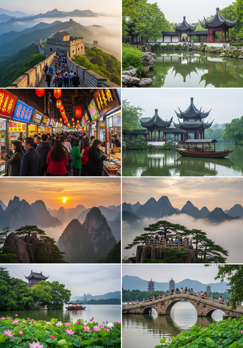 - Подходит ли восток Китая для путешествия с детьми? Да, регион отлично подходит для семейного отдыха. Детям понравятся башня Восточная Жемчужина, водные города с лодками, парки вокруг озера Сиху. Избегайте сложных походов в горах Хуаншань с маленькими детьми.